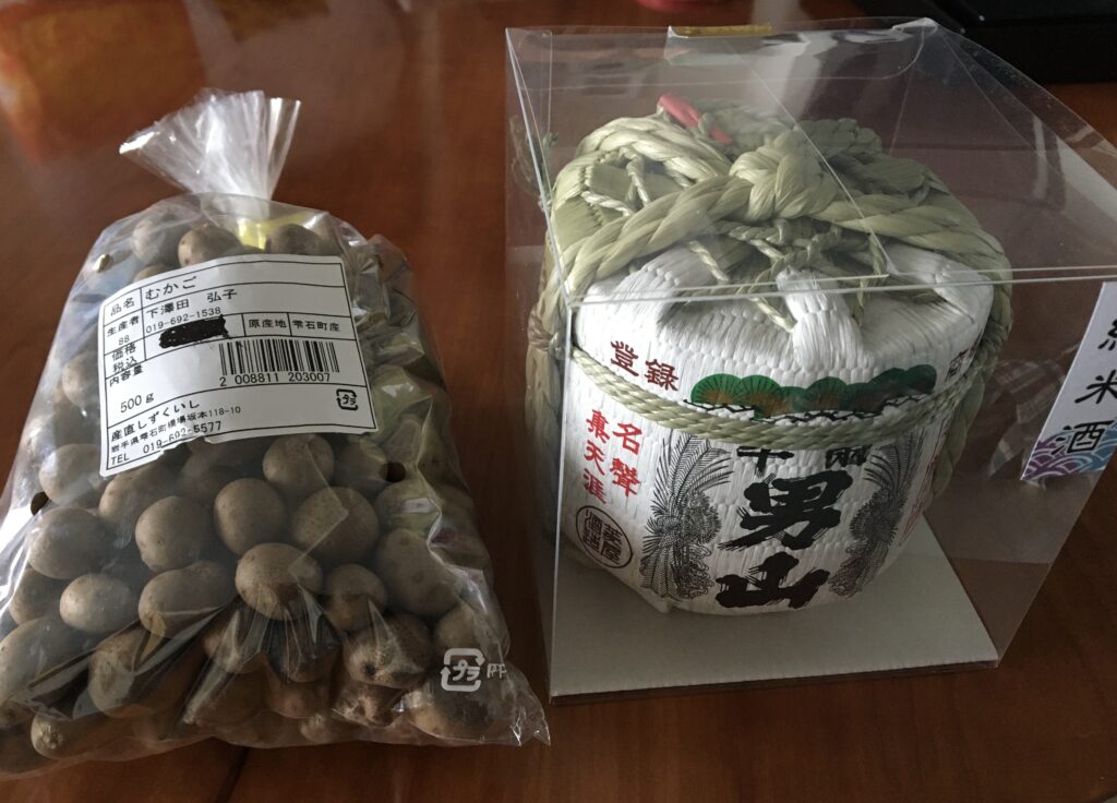 これを手に入れるために、わざわざ雫石まで1時間車を走らせ、さらには宮古まで足を伸ばして、岩手の銘酒「男山」のミニ菰樽もつけてくださいました。