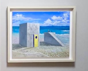 本来は街の中にある無機質なコンクリートの構造物を、あえて海辺に置いてみました。