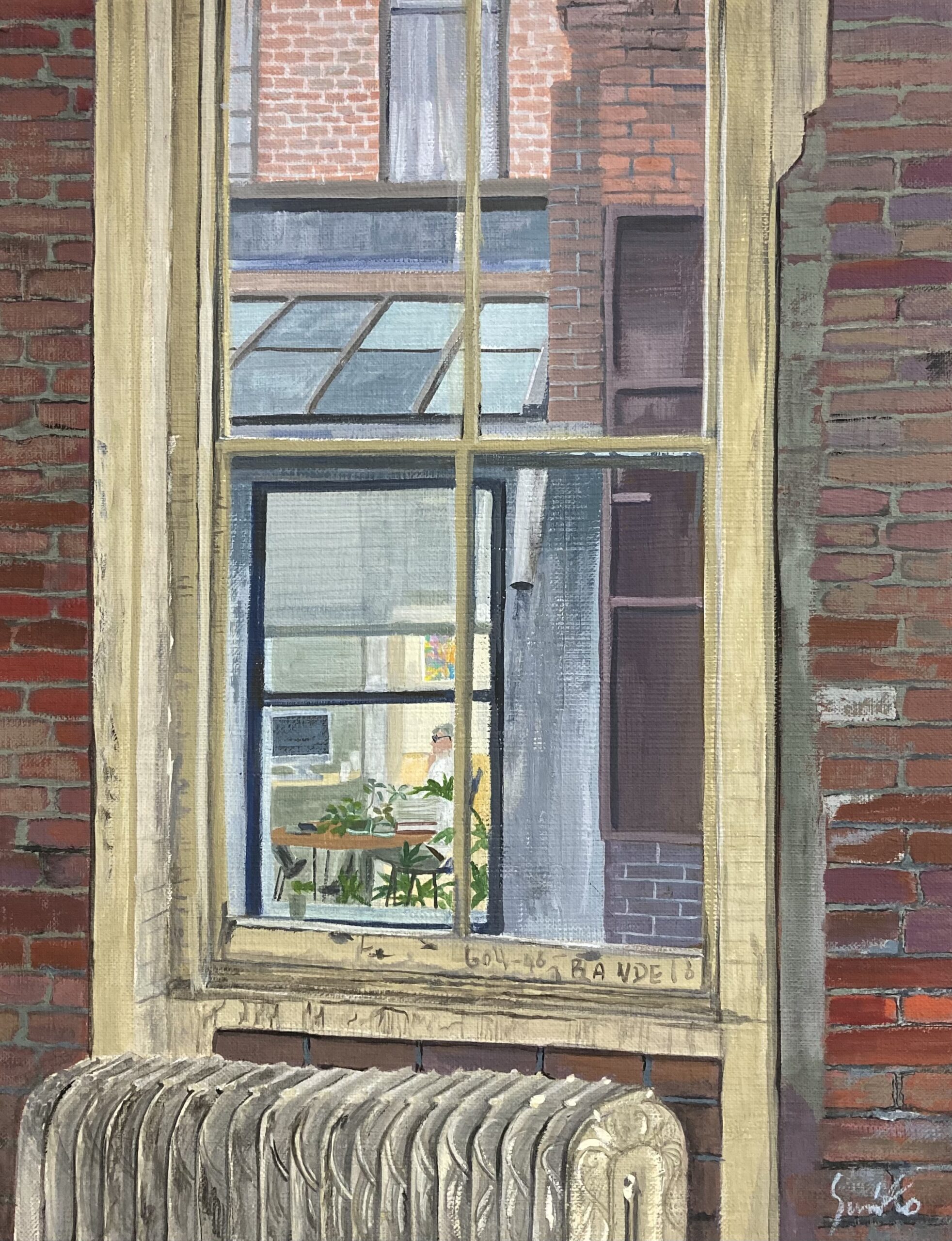 でも、私の目を釘付けにしたのは作品ではなく、壊れかけた窓の向こうに見えた隣の建物。つい先ほどまで自分がいた、ギャラリーのバックオフィスだったのです。