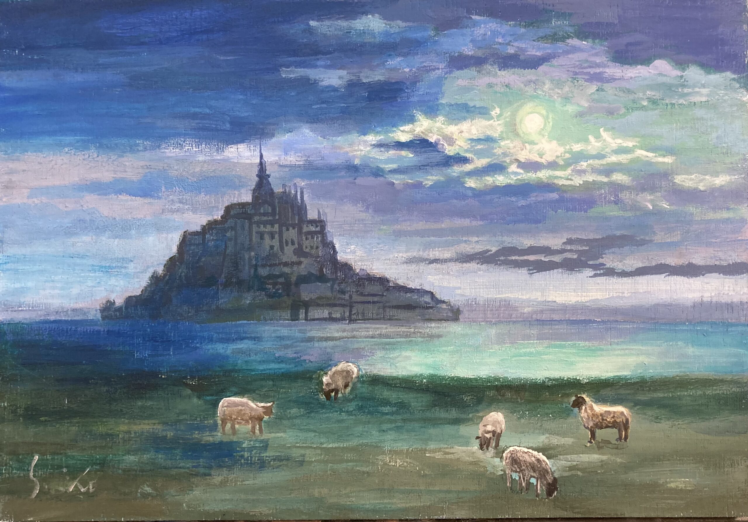 その夜、私はあの羊たちの穏やかなまなざしを思い出しながら、自然のリズムとともに生きる美しさを描きたいと思いました。