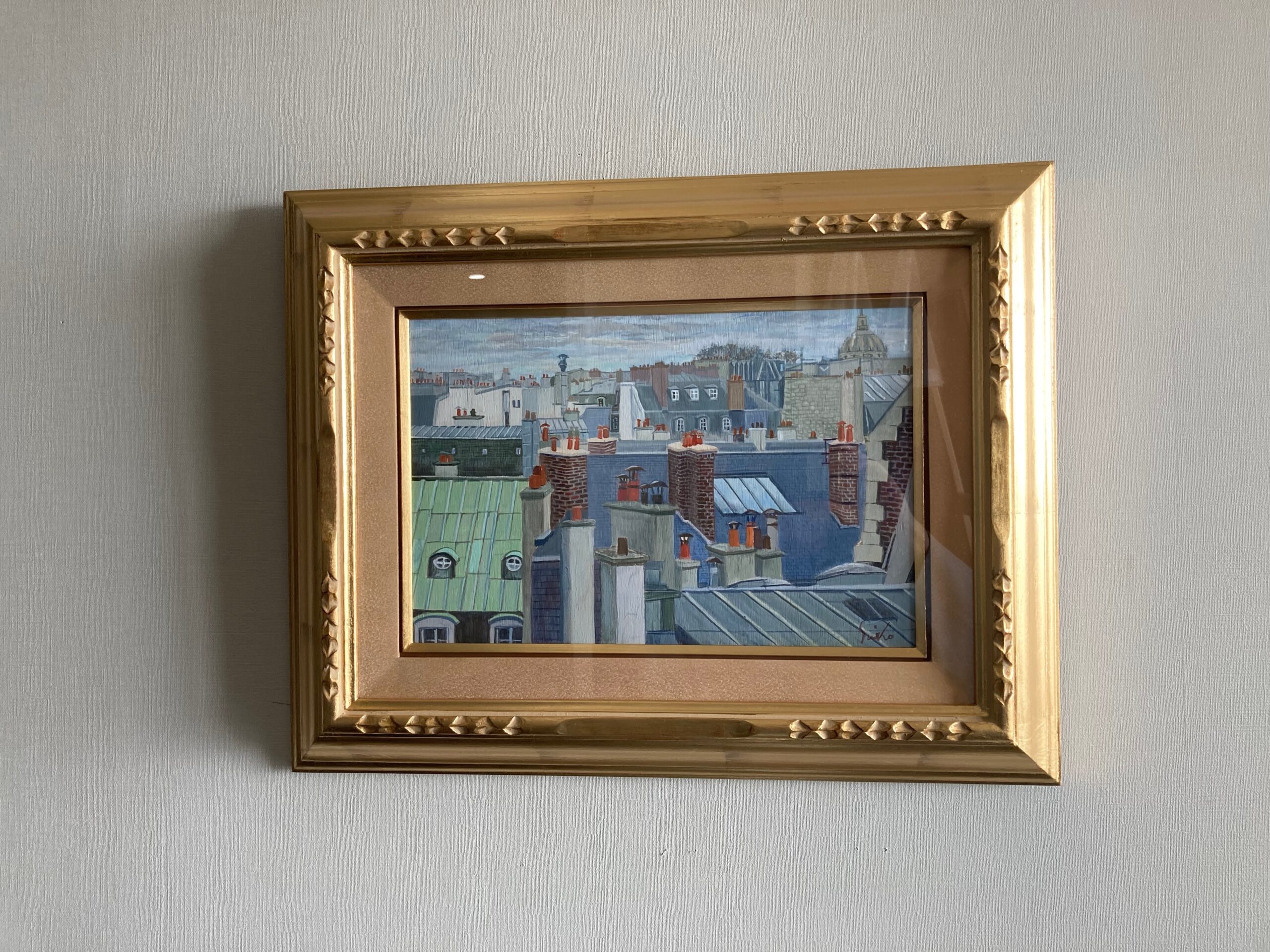 この風景は、オルセー美術館の5階から見える眺め。細長い窓越しに、連なる屋根と煙突がまるで一枚の絵のように見えます。